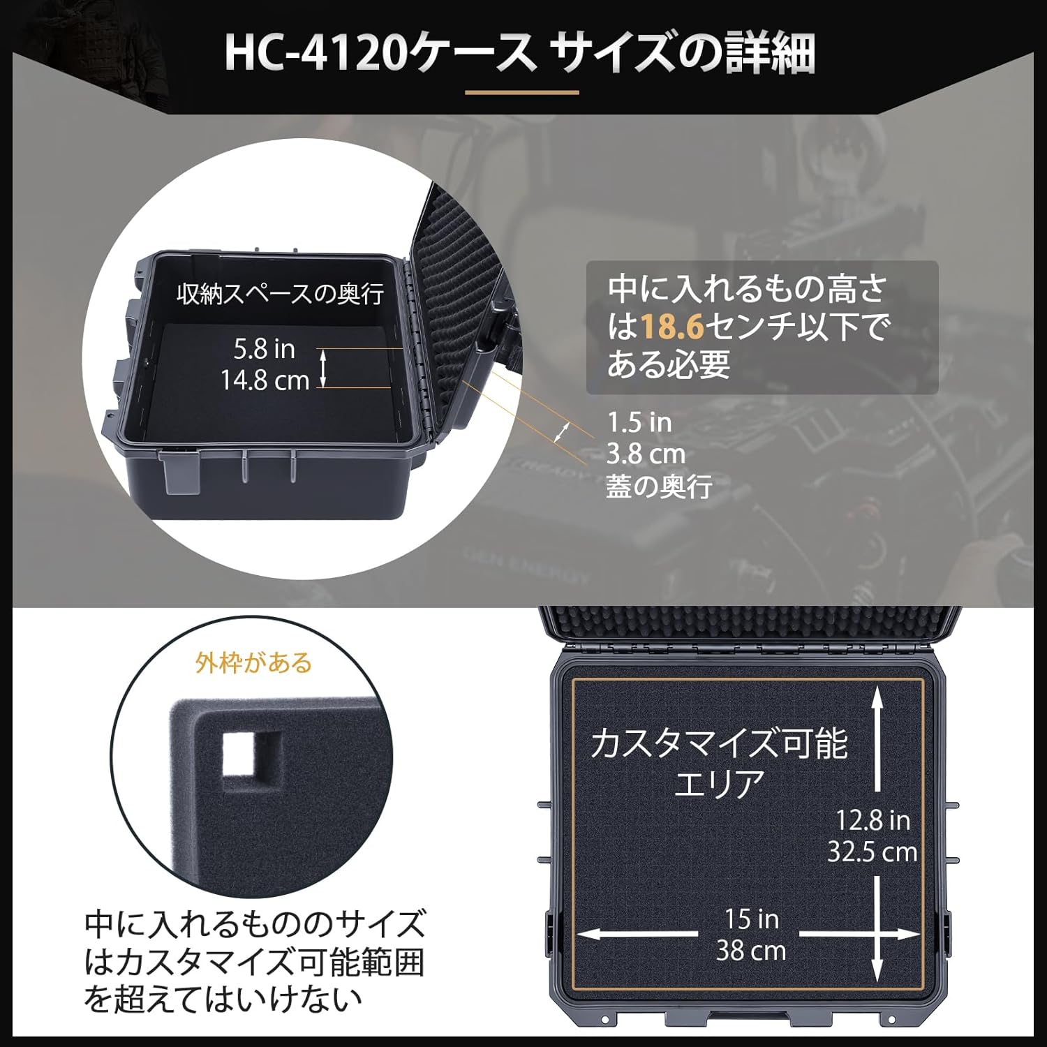 Lykus HC-4120 防水防塵 プロテクターケース 格子状カットスポンジ内蔵 内寸:41x36x19cm ミラーレス カメラ プロジェクター パソコン ピストル ドローン レンズ タブレット インカム 適用 耐衝撃 密閉性 SGS認証 IP67級
